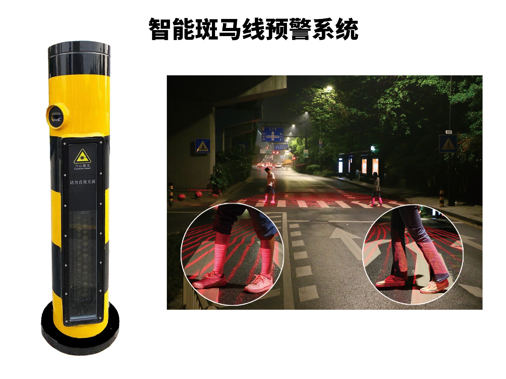 智能斑馬線預警 斑馬線線預警 智安樁 激光樁 過街神器 無燈控斑馬線 司機視角預警 行人過街警示 智慧斑馬線系統